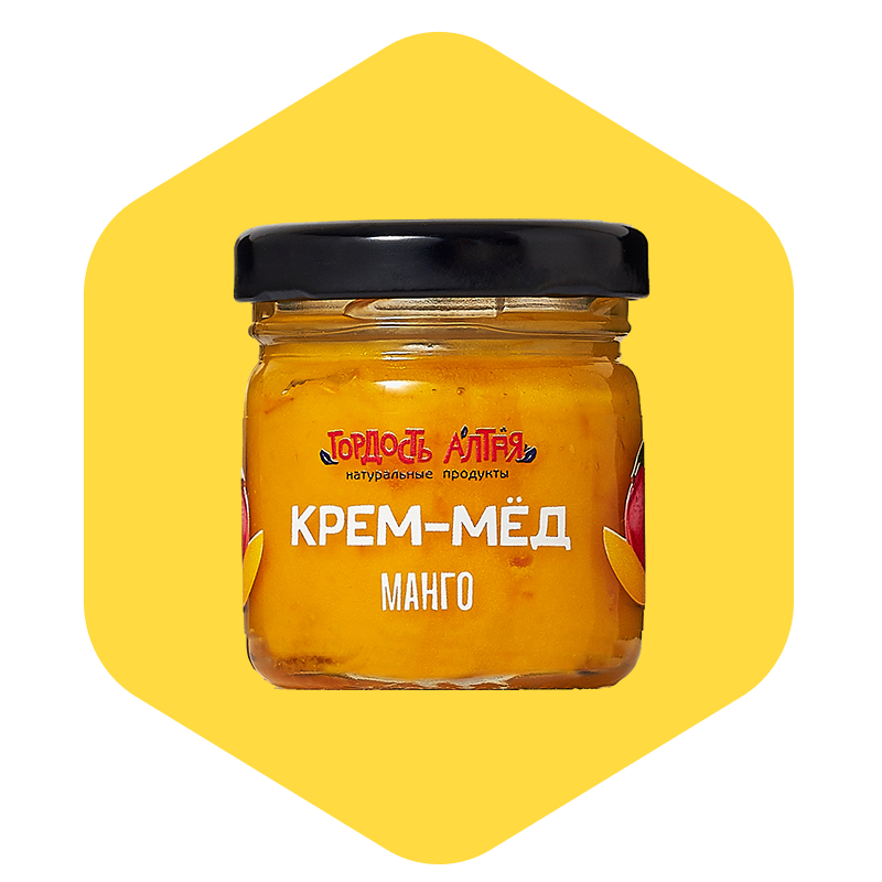 Состав: Натуральный цветочный мёд (Алтай), кусочки манго
